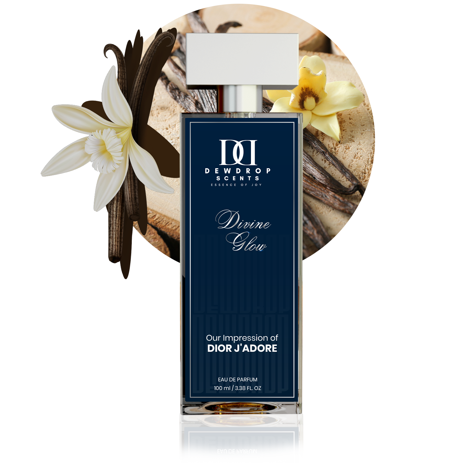 Divine Glow is a radiant and luxurious fragrance that celebrates femininity. It opens with fresh top notes of ylang-ylang, bergamot, and mandarin orange, creating a vibrant start. The heart is a harmonious blend of jasmine, rose, and freesia, evoking a floral elegance. The base of musk, cedar, and vanilla adds warmth and sensuality. This perfume is crafted from exquisite ingredients, making it a go-to choice for those who embrace sophistication and grace.